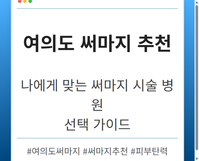 목차 여의도 피부과, 써마지 선택 기준 나에게 맞는 써마지 시술 계획 써마지 시술 전후 주의사항 정품 팁 확인의 중요성 개인적