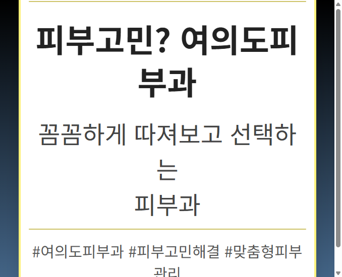 목차 여의도피부과, 왜 꼼꼼히 알아봐야 할까요? 나에게 맞는 피부과 찾기, 첫걸음 피부과 방문 전, 이것만은 꼭 확인하세요! 여의도피부과, 나만을 위한