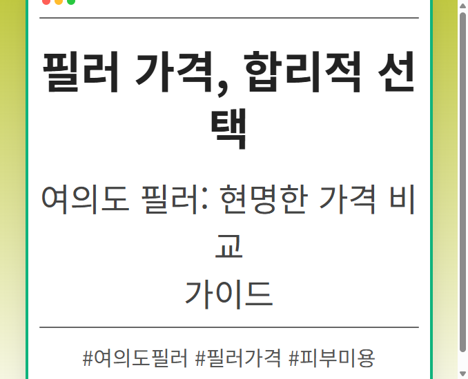 목차 여의도 필러, 왜 가격 비교가 중요할까요? 필러 가격, 무엇이 영향을 미칠까요? 합리적인 필러 가격, 어떻게 찾을 수 있을까요? 필러