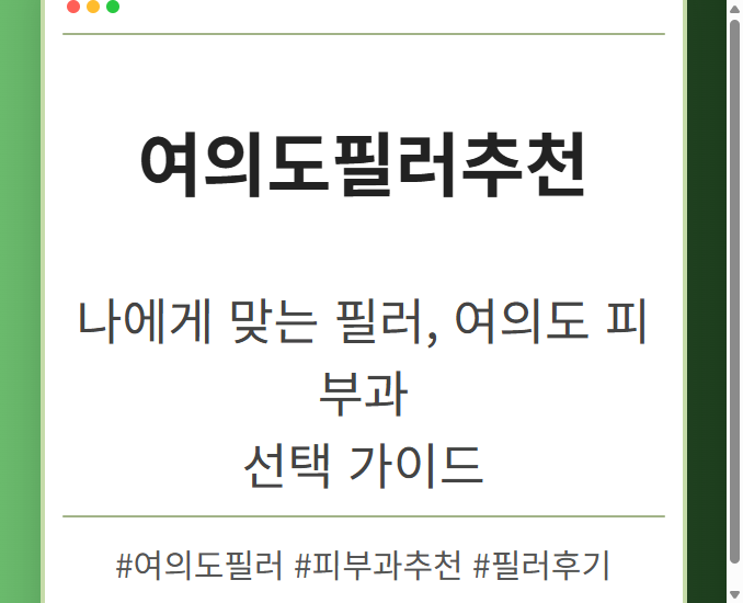 목차 여의도 필러, 왜 특별할까? 개인 맞춤 디자인 정품 필러 사용의 중요성 숙련된 의료진의 노하우 놓치면 후회할 여의도필러이벤트 다양한 필러